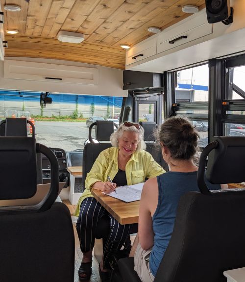 Lorsque la Roulotte juridique se déplace, des consultations gratuites et confidentielles sont offertes aux personnes présentes.